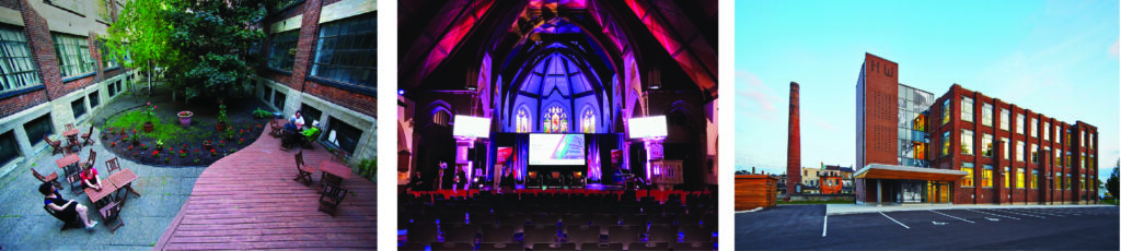 Left to right: Complexe Canal Lachine (credit: GI Quo Vadis); St Jax Montreal (credit: St Jax); Harvey Woods Lofts (credit: Invizij).