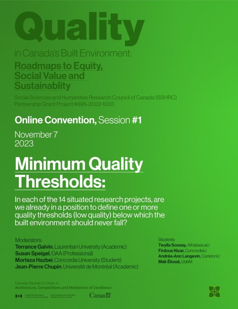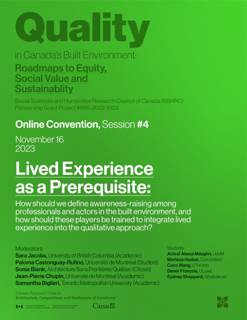 - -Session moderated by :Sara Jacobs (University of British Columbia), Sonia Blank (Architecture Sans Frontière Québec), Paloma Castonguay-Rufino (student Université de Montréal)