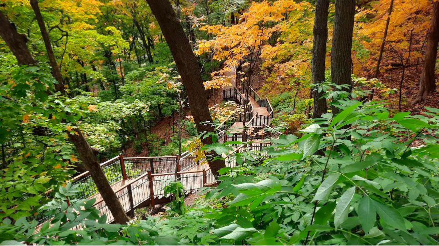 Through the mature forest that covers the cape, the trail also offers magnificent views of the river and bridges, echoing the Promenade Samuel-De Champlain just below. With its inviting wooden benches and elegant belvederes, the area has managed to retain much of its old-world charm. Its green spaces and trees, including some venerable centenarians, create a succession of breathtakingly beautiful tableaux.” (excerpts, Radio Canada, 2022)