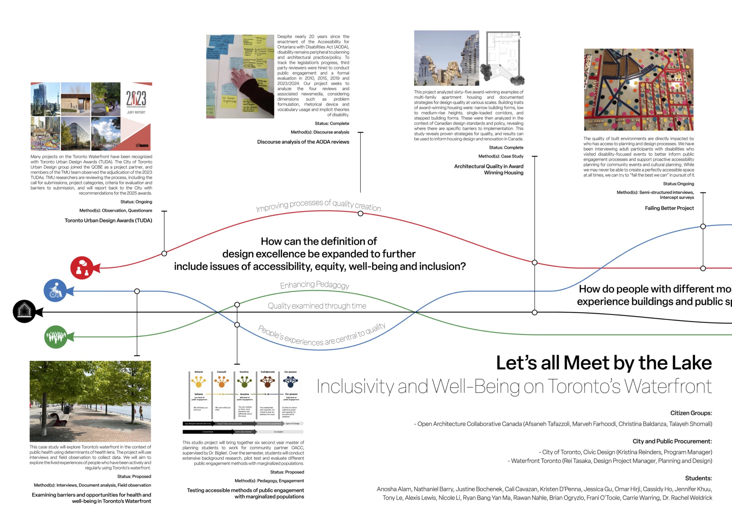 The initiative led by Toronto Metropolitan University explores the potential for expanding the definition of design excellence to include critical issues such as accessibility, equity, well-being, and inclusion, specifically in the context of Toronto’s waterfront. The analysis involves various stakeholders and experts. It aims to explore the experiences of individuals with diverse abilities in public spaces and to use these insights to enhance design practices.